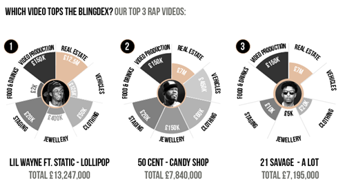 Indeed, while aspects of the music industry have shrunk, what hasn’t downsized are the vast sums some of music’s most notable MC’s are willing to spend on adding a visual exclamation-mark to their lyrics.
