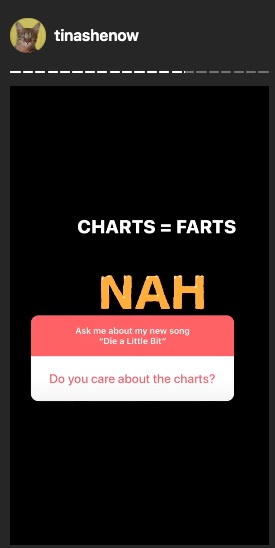 I don’t blame her, the charts are irrelevant trash nowadays, allowing album tracks to chart so these mediocre artists can set bullsh*t chart “records” as if they’re legends or something, and songs can be certified Diamond despite barely even selling 1 million in pure sales. Billboard charts are a joke, and Tinashe is right to not care. Other artists need to follow suit.