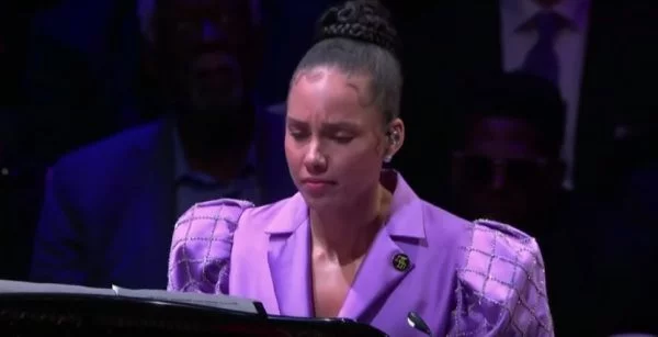 Alicia Keys joined the likes of Beyonce and Christina Aguilera in giving musical tribute to the late great Kobe Bryant and his daughter Gianna at their Los Angeles memorial today.