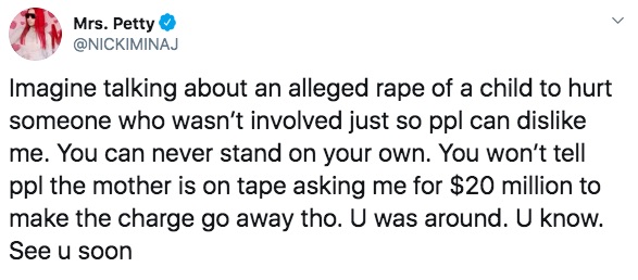 Welp, all Nicki’s doing is defending herself. At the end of day, SHE has nothing to do with what her brother did…
