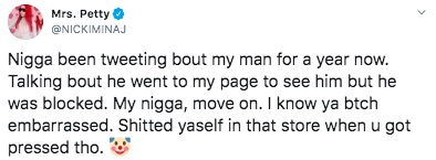 Hey TGJ Staff, I noticed you guys only posted the part of the exchange that makes Nicki look like a gangster and Meek look weak, but tell what all was tweeted. She kept going and shot herself in a cross, AGAIN. Tweeting information about her brother’s victim and the victims mother to make them look bad and money hungry. And trying to say her brother didn’t r*** the victim, that the whole situation was “ALLEGED” ??♂️! Nicki did more damage in this tweeter beef than Meek. Meek’s brand won’t be tarnished, he’s a man in a male dominated industry. He’s not a mainstream rapper and gets all his money through touring, deals and Dream Chaser imprint. Nicki career is up in flames, under new management that’s trying to present her in a promotional light if she’d let them. Her “pen” has been slipping since 2013 and now it’s VERY underwhelming. She’s even tried to revert back to the colorful looks that made her popular and that didn’t work. She wants to be a mainstream queen living like a L&HH cast member. Her new song will flop and era will be ruined, simply because she’s going to do f*** s*** and won’t listen when management and fans tell her it’s not a good look.