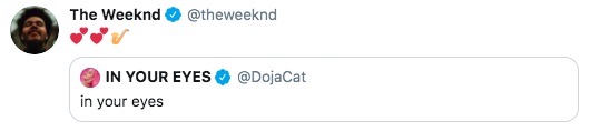 Taking to Twitter, she drummed up buzz when the tweeted ‘In Your Eyes’ – the title of the Canadian singer’s latest single: