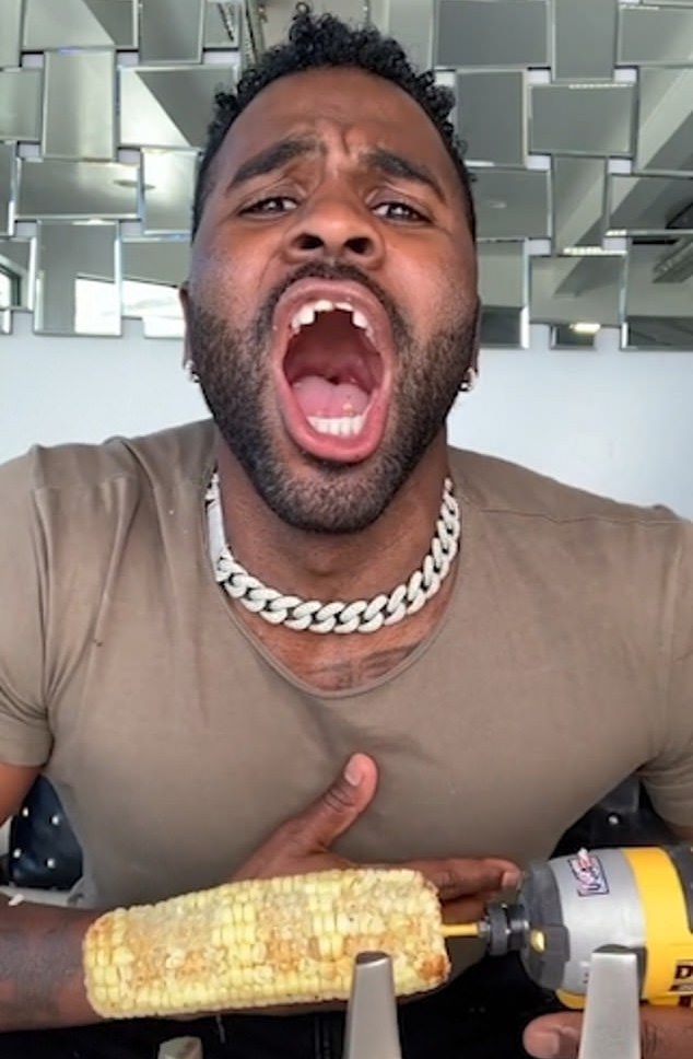A new skit on the social media platform (where Derulo boasts 20 million followers) saw the star attach corn to a drill and attempt to eat it as it spun. Yes, you read it right.