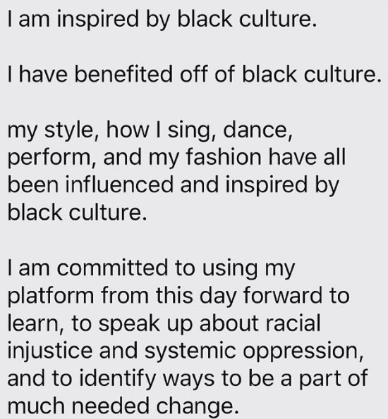 In a pledge shared on social media, the singer vowed to illuminate the realities of racial injustice.