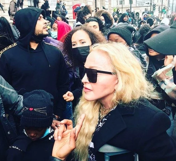 Madonna braved the elements and ill health to march at a #BlackLivesMatter rally in London moments ago.