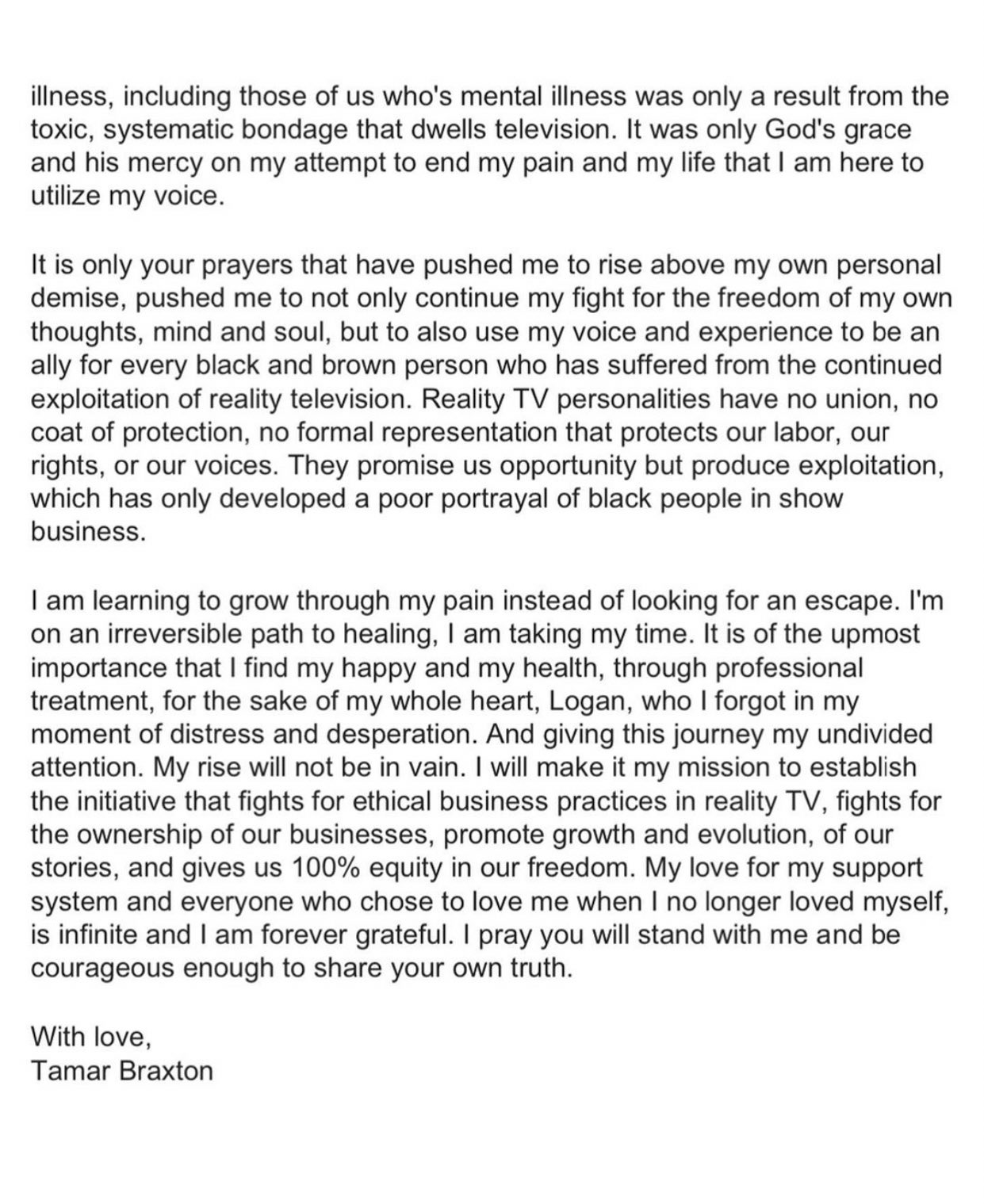 I love Tamar Braxton. She has an absolutely incredible singing voice. I hope she makes a full recovery and gets back to sharing her gift with the world.