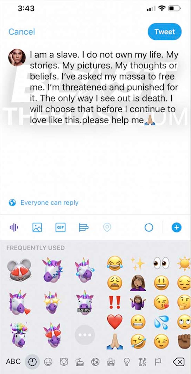 As we shared, she added the word “slave” to her Twitter profile in the moments before the incident.