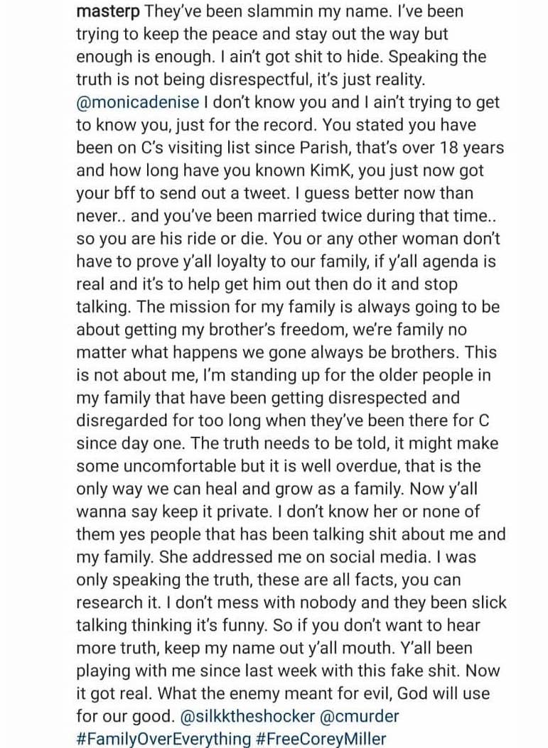 “I have been respectful towards you and you have refused to do the same! You can NOT speak on me because you do not know me! I have only conversed with Silkk! This matter is between you MEN, you’re brothers! Leave me out of this because my efforts have BEEN the same! I just didn’t see the need to post it! Check the visiting lists from The Parish to Angola to Hunts or better yet ask his children!