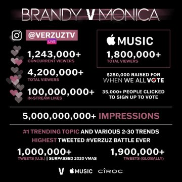 Brandy and Monica‘s epic Verzuz battle broke the internet and broke a number of records in the process.
