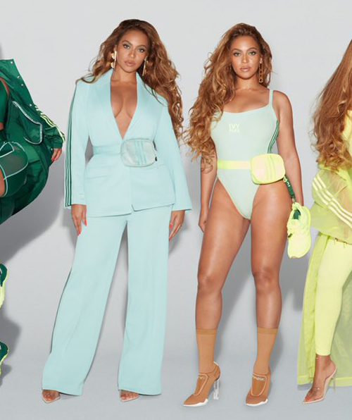 In each, Queen Bey rocks different items and colors from the second instalment of the line.