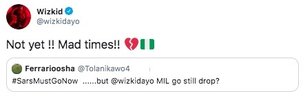 Wiz has been at the forefront of calls for change, as such it’s understandable why he’s keen to keep the focus on dissolving what he (and many others in the #ENDSARS movement) say is widespread corruption and violence in the sect.