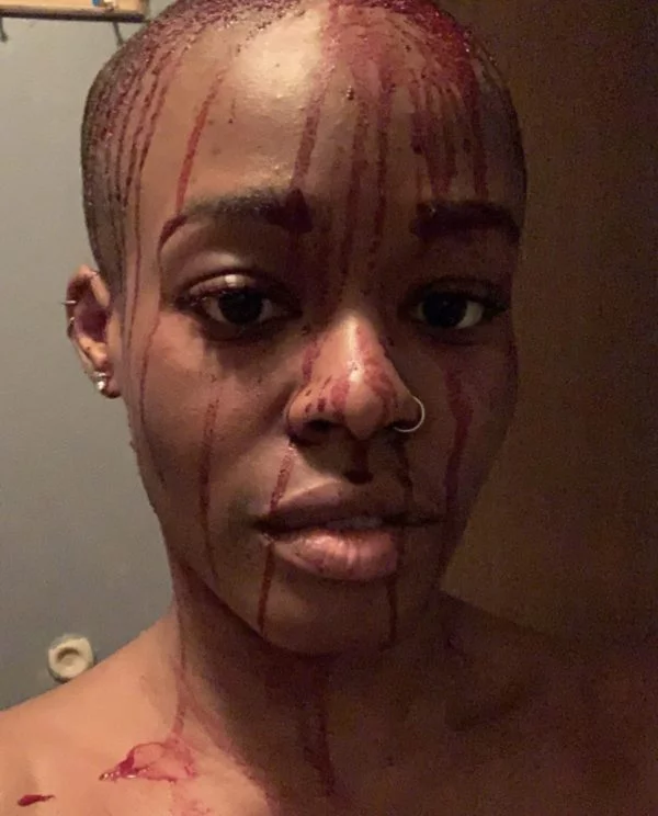 She’s doing a tribute to Britney for shaving her head ???????????? blood paint is some feminist s h I t I guess