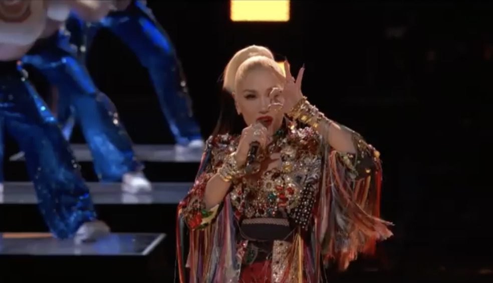 Backed by a troop of dancers, Stefani sparkled with ample spectacle as she brought the bouncy track to life.