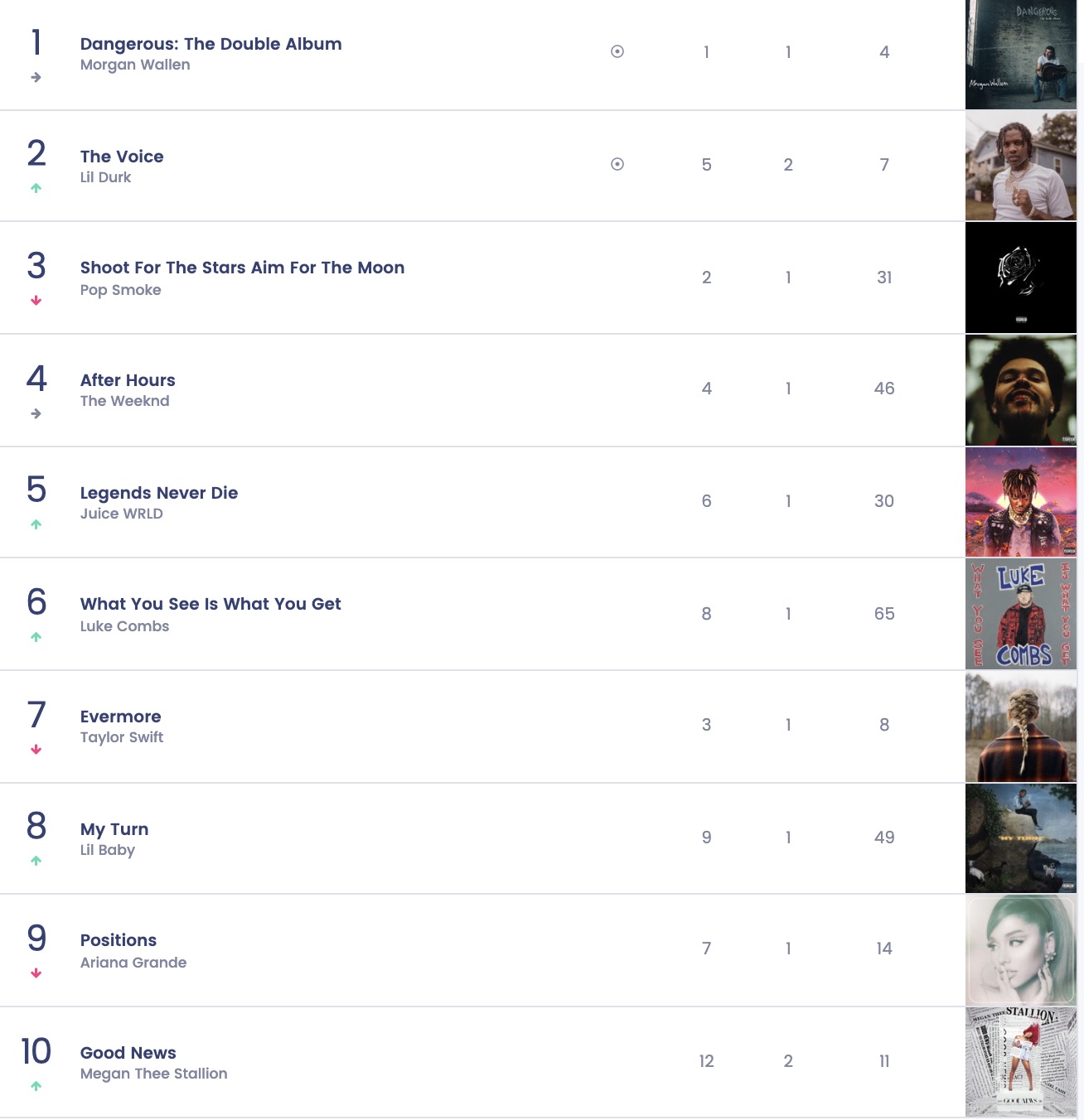 Overall, only nine other acts have spent at least 500 weeks on the chart with one of their albums (as of time reported): Pink Floyd (‘The Dark Side of the Moon’), Bob Marley and the Wailers’ (‘Legend’), Journey (‘Greatest Hits’), Metallica (‘Metallica: The Album’), Guns N’ Roses’ (‘Greatest Hits’), Eminem (‘Curtain Call: The Hits’), Nirvana (‘Nevermind’), Bruno Mars‘ ‘Hooligans,’ and Creedence Clearwater Revival (‘Chronicle: The 20 Greatest Hits’).