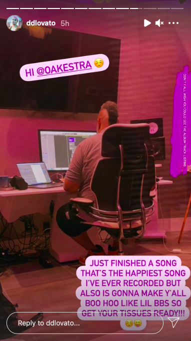 “Just finished a song that’s the happiest song I’ve ever recorded but also is gonna make y’all boo hoo like like bbs, so get your tissues ready!!!”