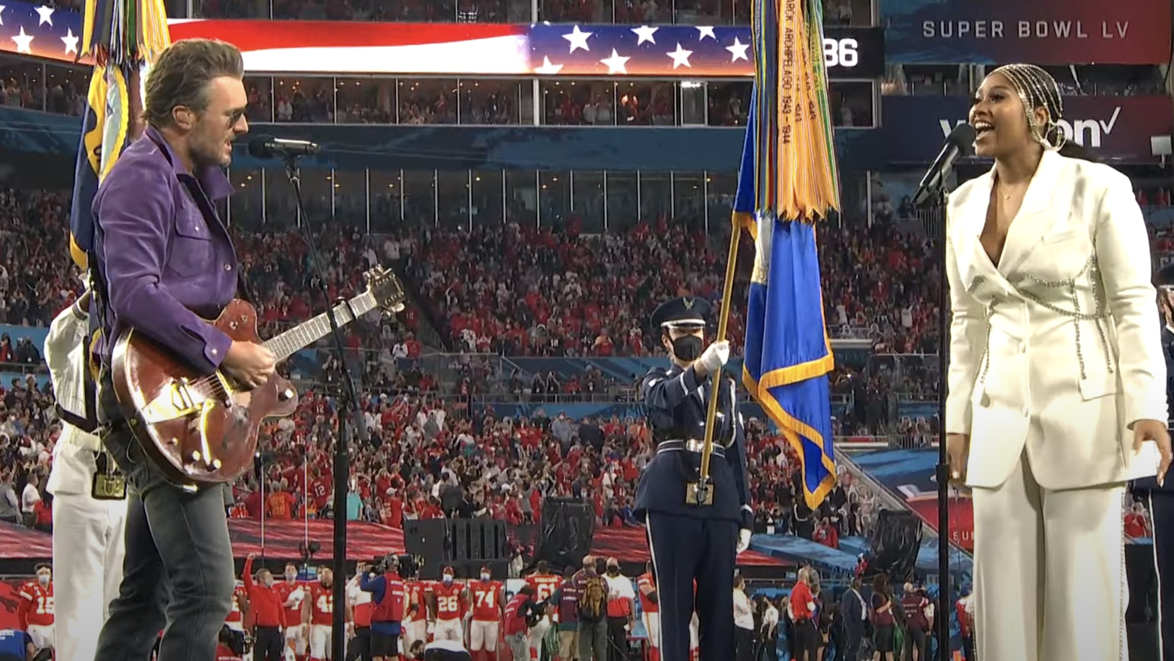 Together with Country star Eric Church, the soulful songbird joined the elite list of names to perform the US National Anthem at the Big Game.