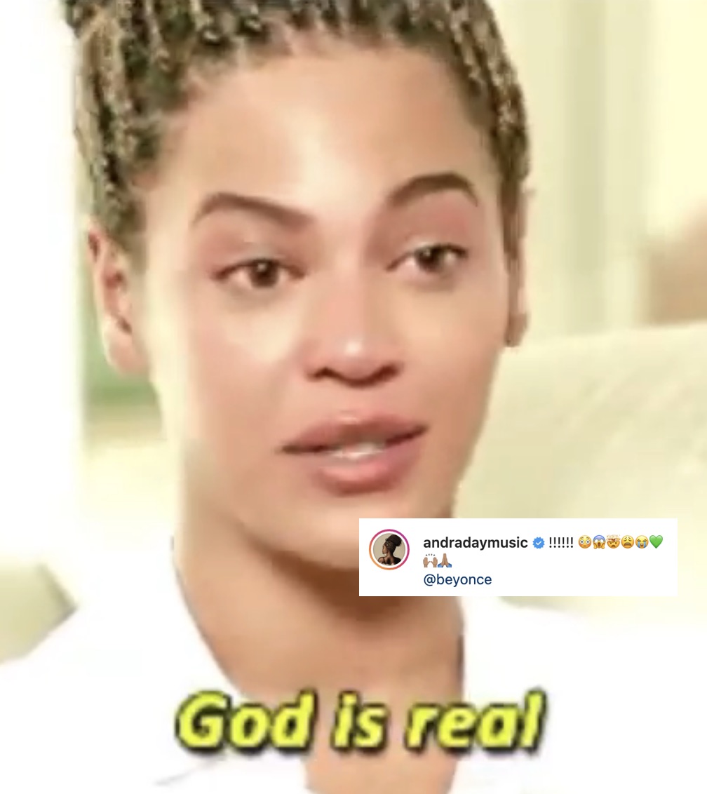 Day also added a pic of Bey and captioned the snap with “God is real”