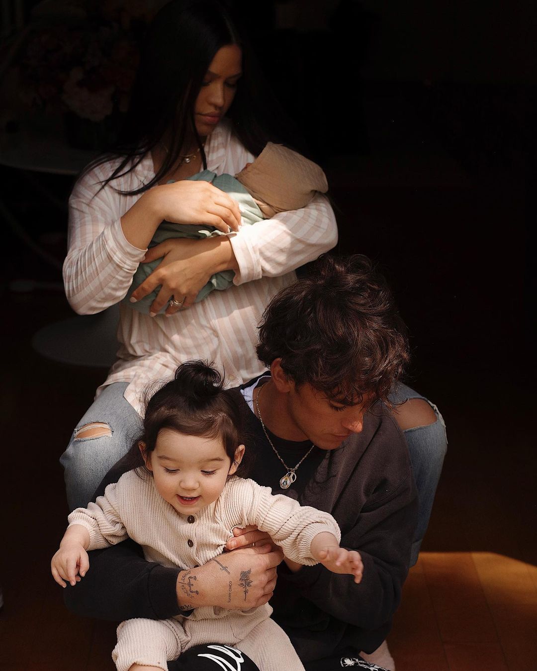 The news was accompanied by several stunning portrait snaps of the whole family – Cassie, Sunny, Frankie, and Alex,