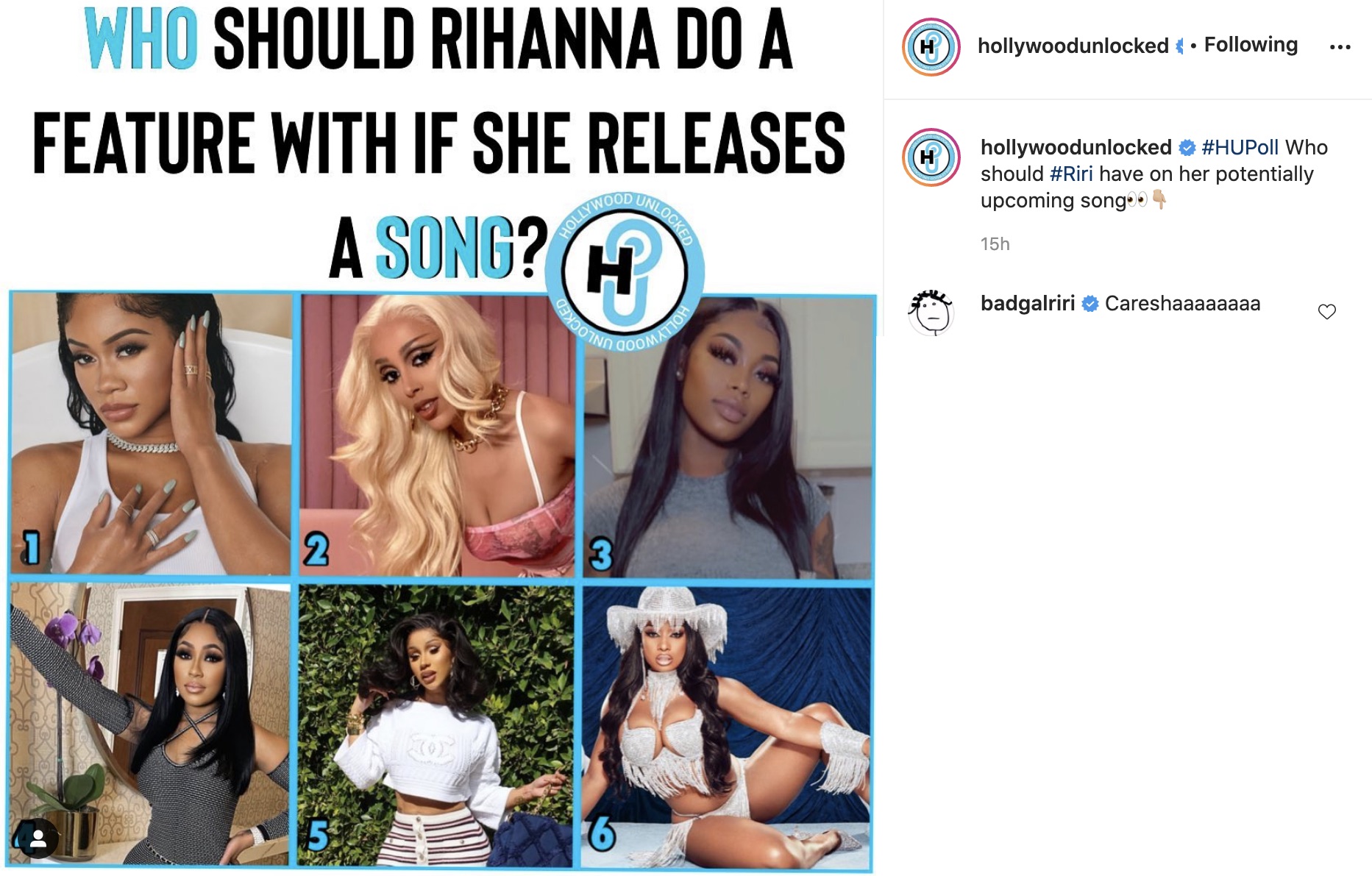Rihanna collaborating with cardi or megan will also be a hit.