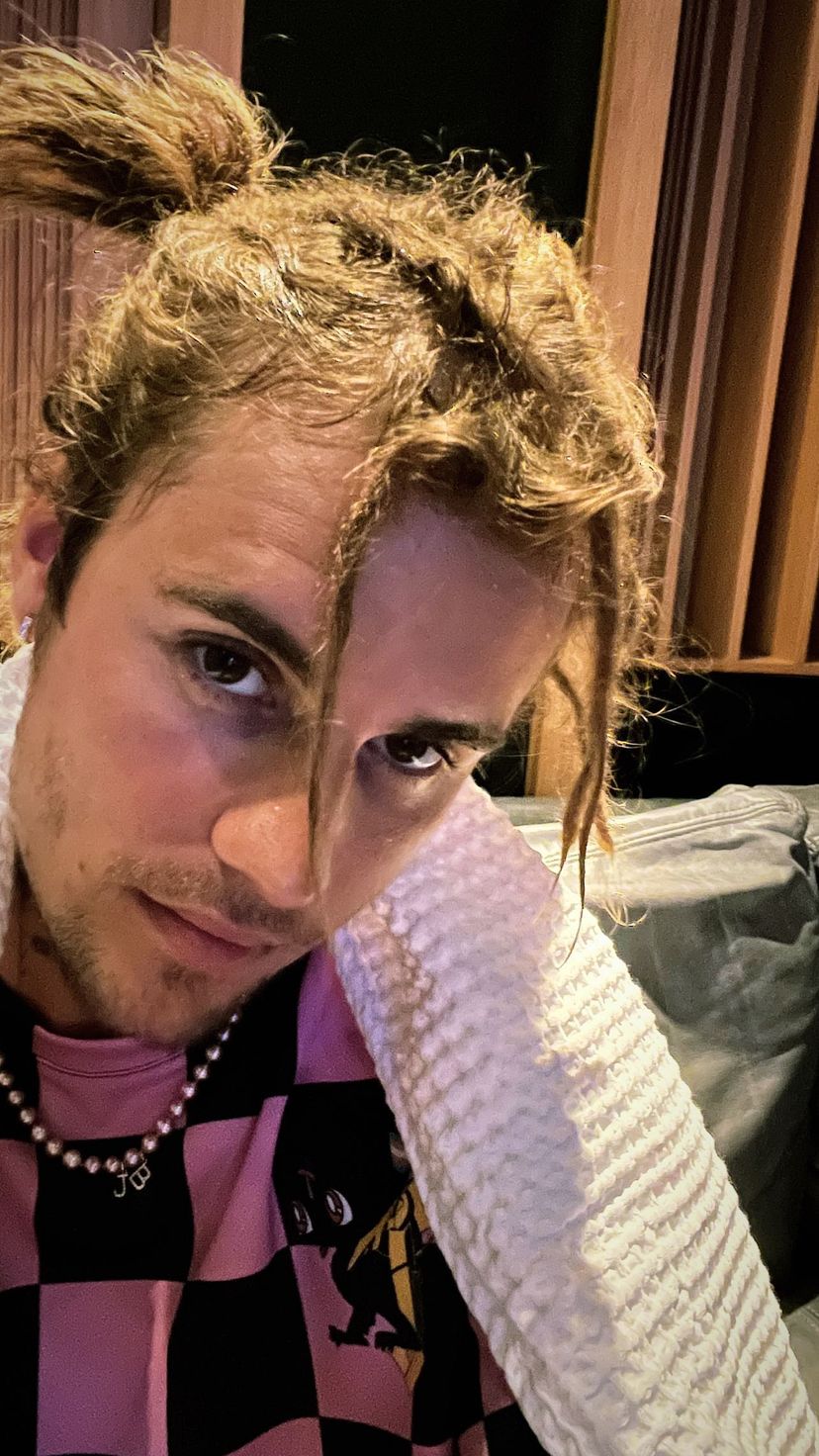 Sharing a series of pictures, JB posed it up with his growing mane.