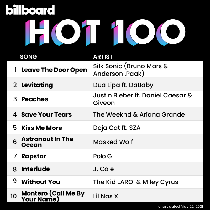 Now the curtain has been flung back and it reveals that Bruno Mars and Anderson. Paak has returned to #1 with ‘Leave The Door Open.’