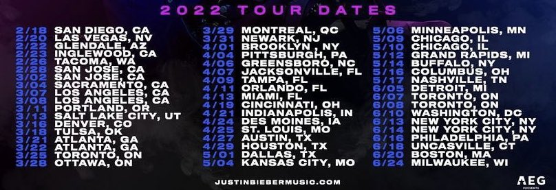 Now, armed with the momentum of his recent chart success with the ‘Justice’ album and the market’s move towards recovery, Bieber has unveiled dates for the tour.