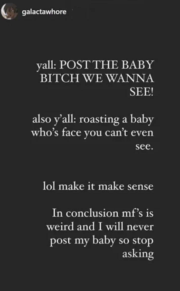 In conclusion mf’s is weird and I will never post my baby so stop asking.”