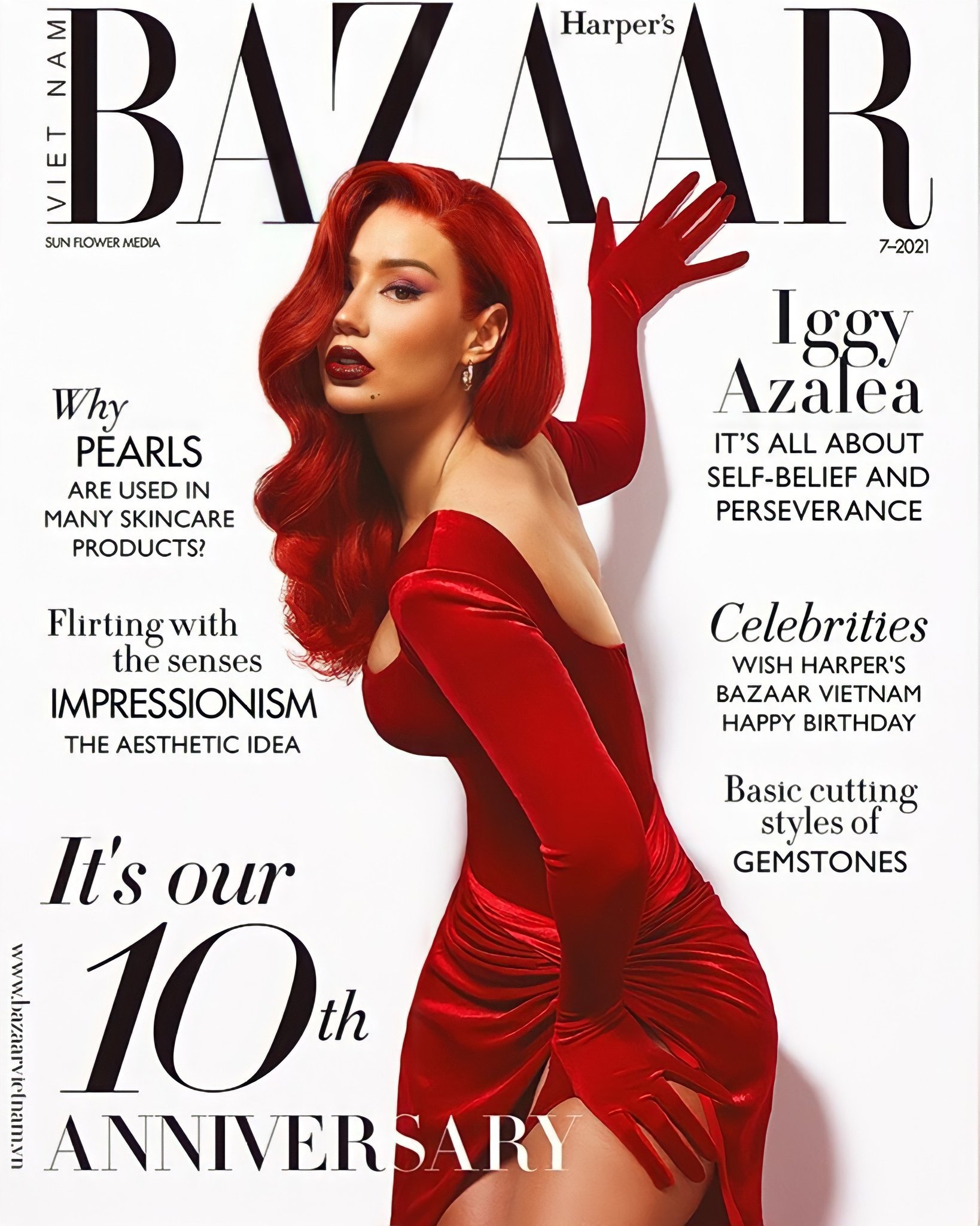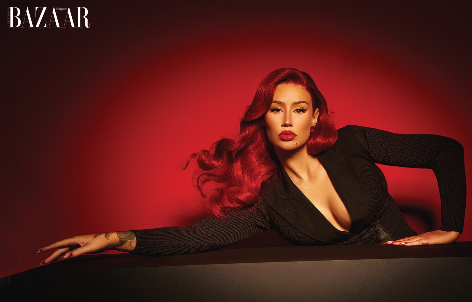The femcee serves fiery redhead in the 10th-anniversary issue of Harper’s Bazaar Vietnam.
