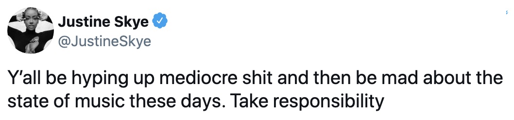 “Y’all be hyping up mediocre sh*t and then be mad about the state of music these days. Take responsibility