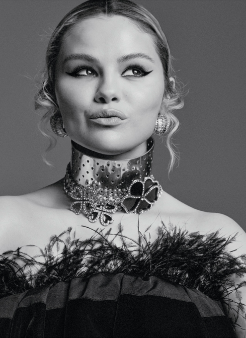 A sophisticated spread, Gomez appears elegant and poised across the shoot.