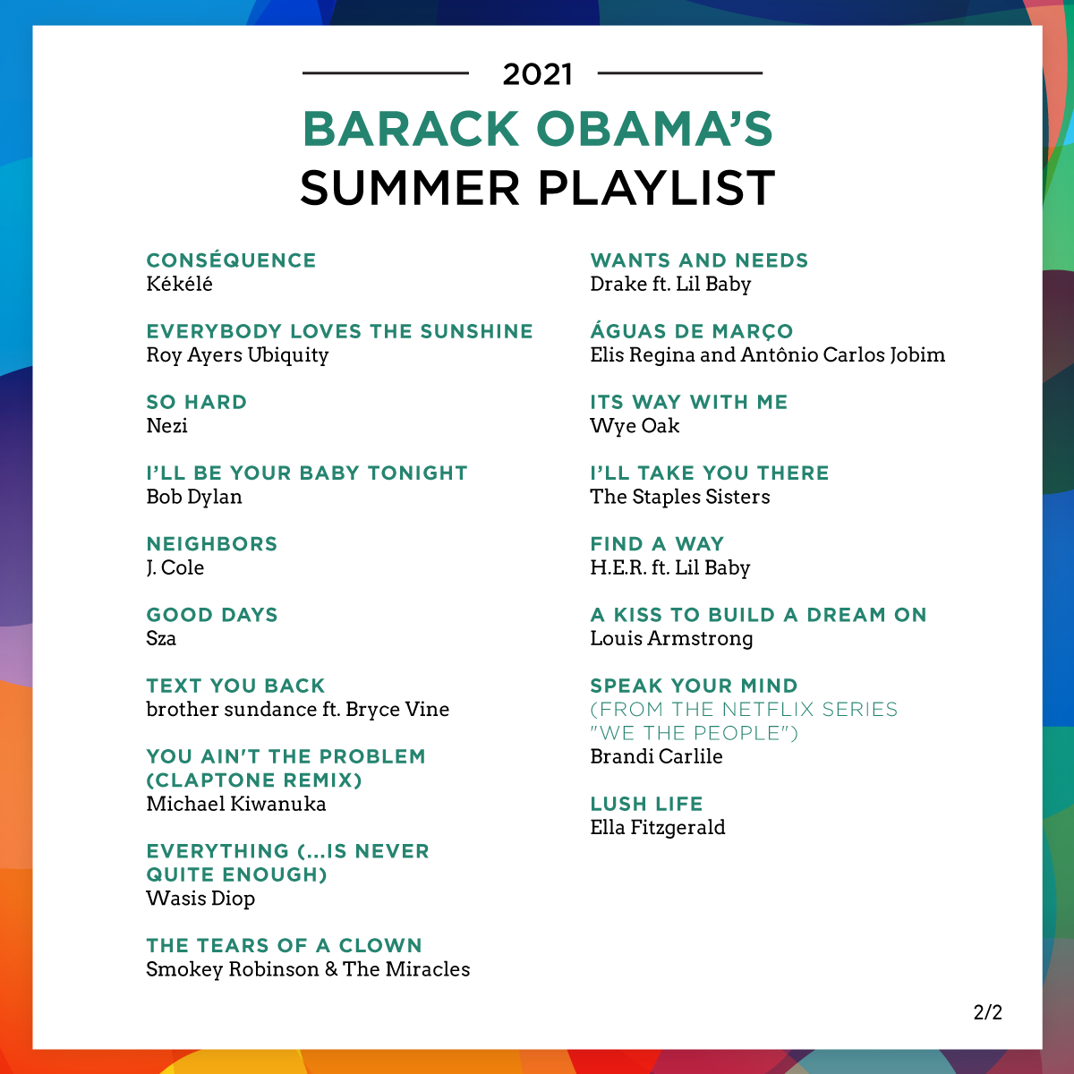 For, America’s 44th president has unwrapped his top Summer Playlist 2021.