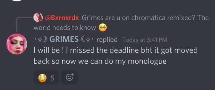 When asked if she would be appearing on the project, Grimes said: