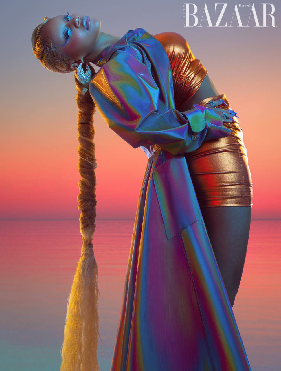 The femcee scorches in the latest issue of Harper’s Bazaar Vietnam.
