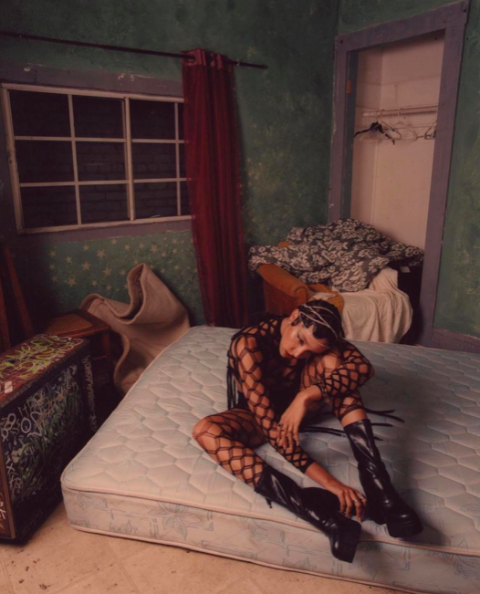 Lensed by Sam Dameshek, Tinashe can be seen adorning a hexagon pattern outfit and black boots. She covers the Broken Hearts Issue.
