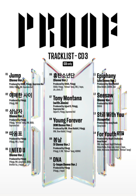The third round of tracks for their upcoming ‘Proof’ album have been revealed. This round of tracks takes listeners into the making of their songs, as many demos are included. Such demos include: ‘DNA,’ ‘Spring Day,’ and ‘Young Forever.’