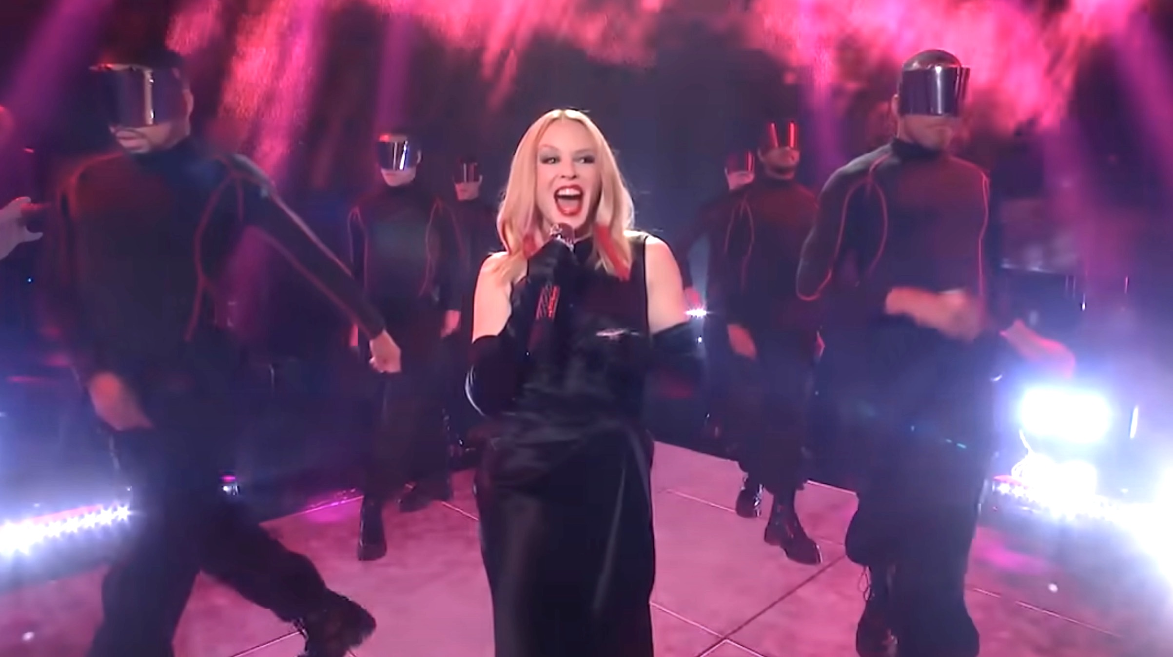 Backed by a troop of energized dancers, the legend rocked out to the track – which serves as the premiere taste of her 16th studio album ‘Tension’ (due September 22 via BMG).