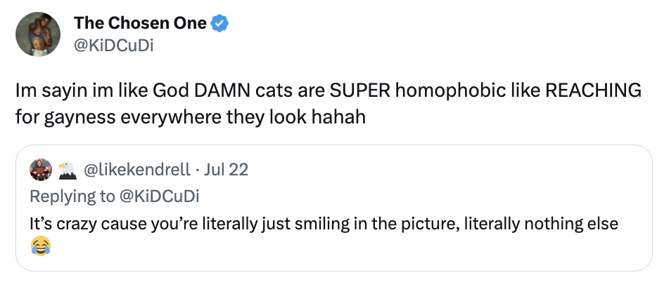 “Im sayin im like God DAMN cats are SUPER homophobic like REACHING for gayness everywhere they look hahah”