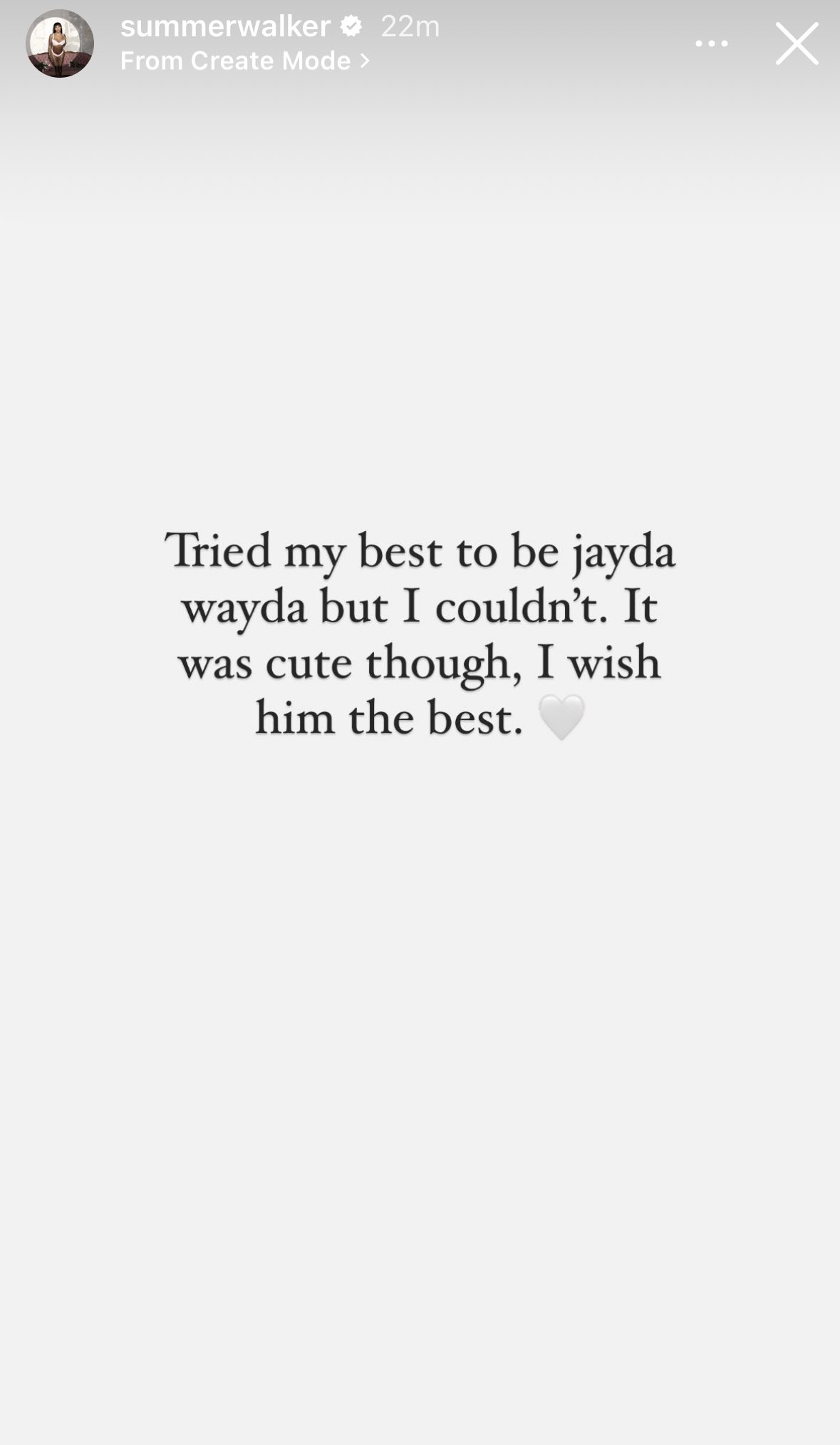 “Tried my best to be Jayda Wayda but I couldn’t. It was cute, though. I wish him the best.”