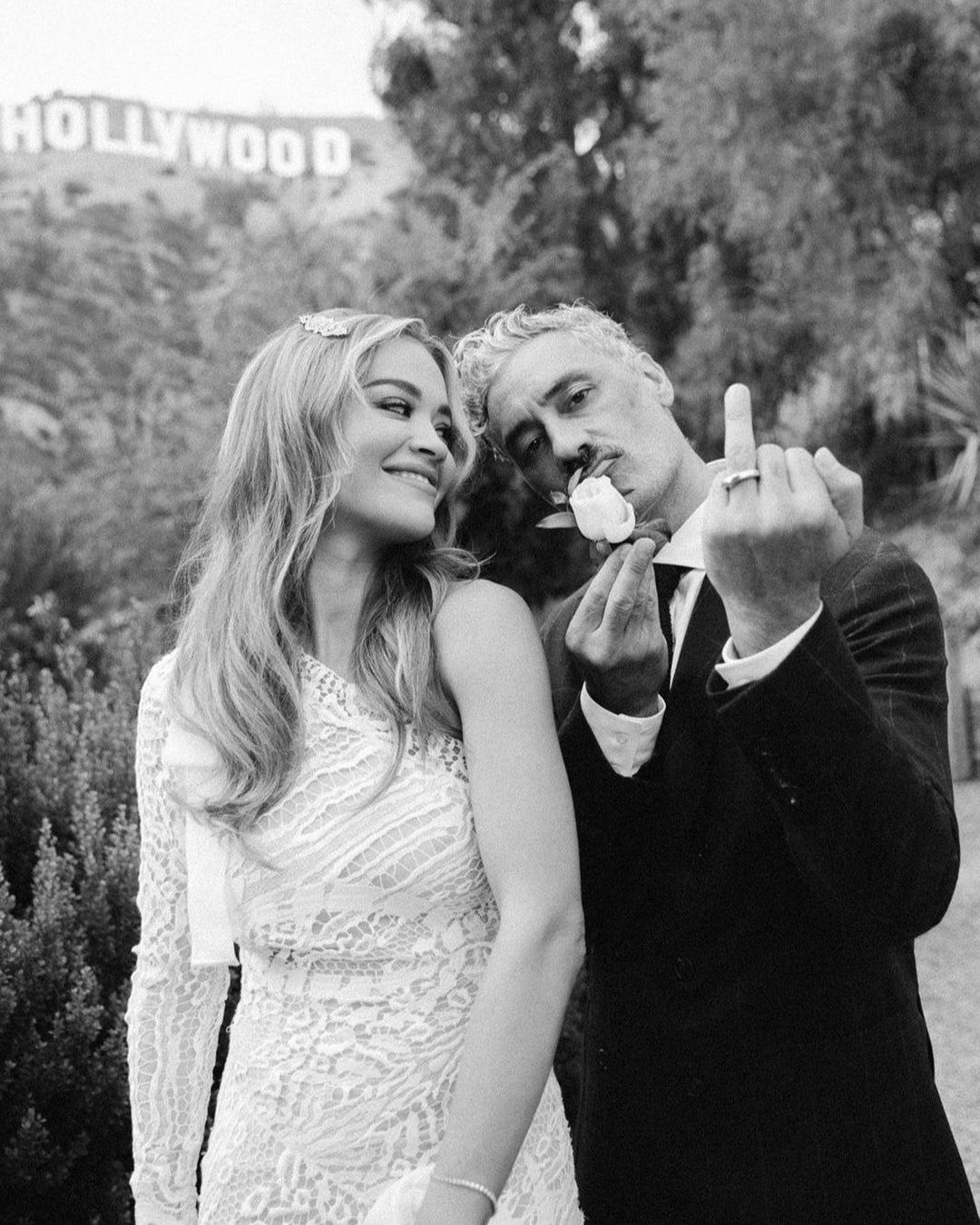 “Rita [Ora] proposed to me, and I said ‘yes’ instantly,” filmmaker Taika Waititi says of how he and the singer-songwriter became engaged. While the pair first met at a barbecue in 2018 that Taika hosted at his house in L.A., it wasn’t until 2021, when they were both filming in Australia, that they began dating. Rita popped the question while on vacation in Palm Springs in the summer of 2022, and they planned an impromptu wedding to be held in Los Angeles a few weeks later, on August 4. “It wasn’t in London or in France like everyone reported,” Taika clarifies. “It was in L.A. with a small group of friends.”