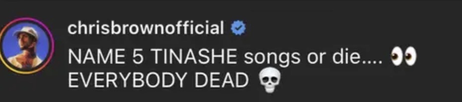 “NAME 5 TINASHE songs or die….EVERYBODY DEAD.”