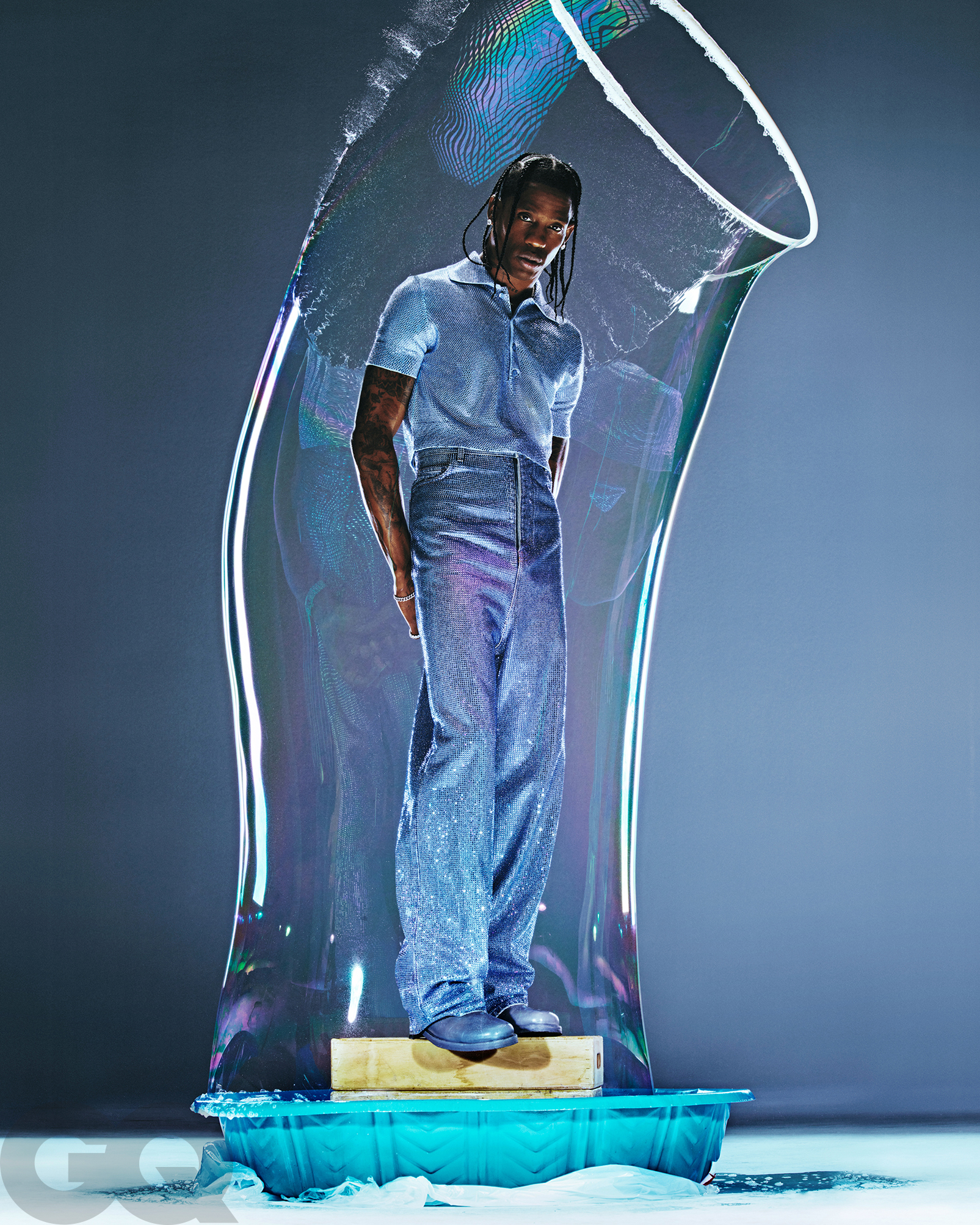 Travis Scott styles, profiles, and sparkles on the cover of GQ’s Men of the Year issue.
