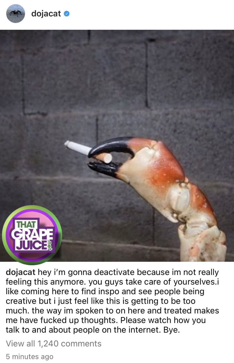 Doja Cat has announced that she’s leaving Instagram.