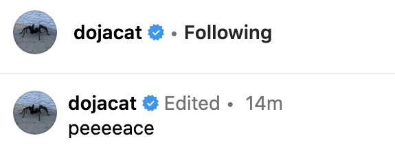 Update: Doja has updated the caption to simply read “peeeeace.”