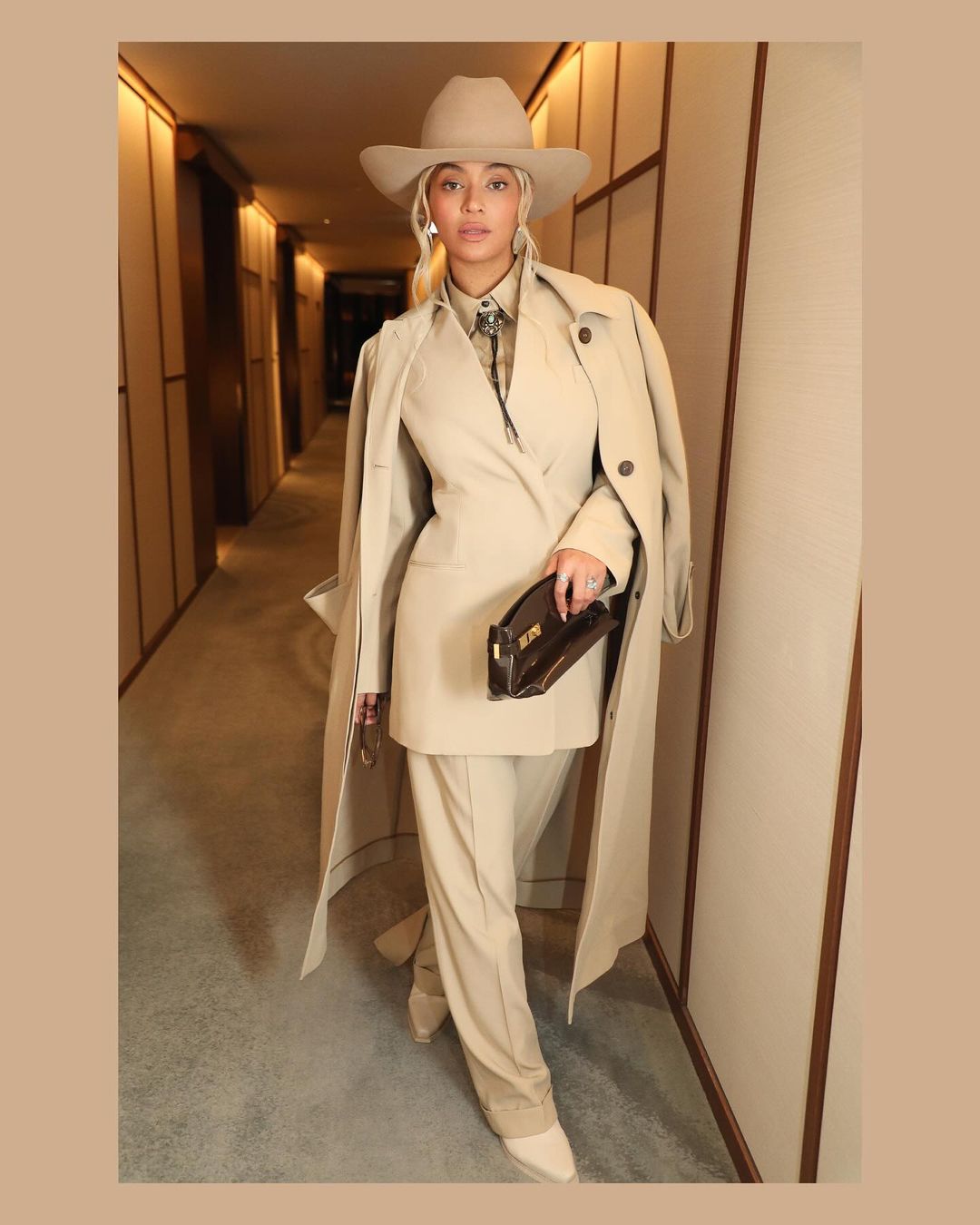 As buzz about a potential new tour gaining volume, the diva stepped out in a magnetizing cream suit along husband JAY-Z.