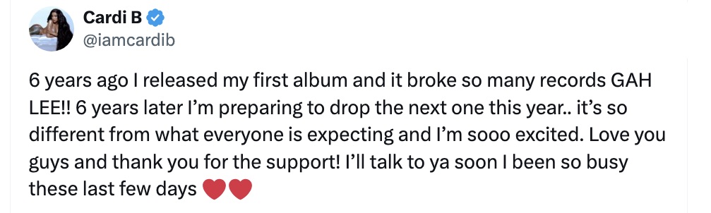 As ever, we’re all sorts of buzzed to hear what Cardi has been cooking up. Are you?