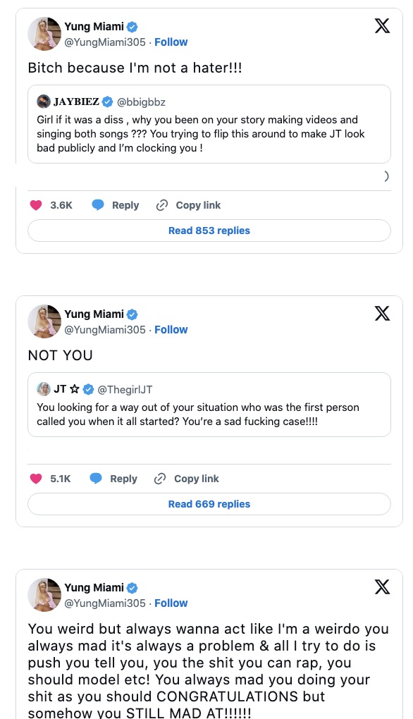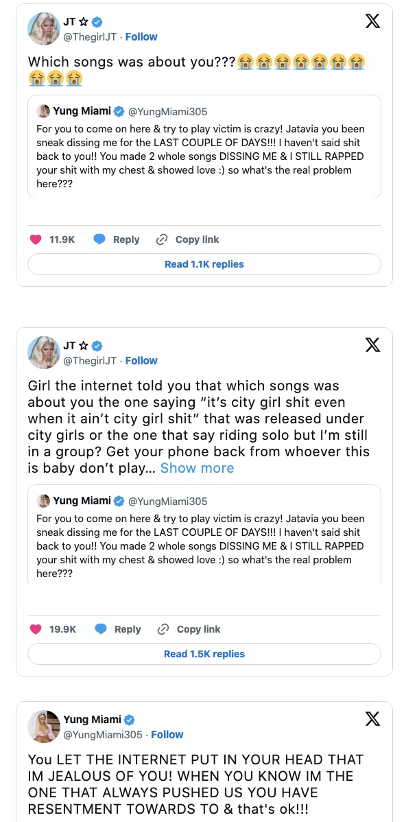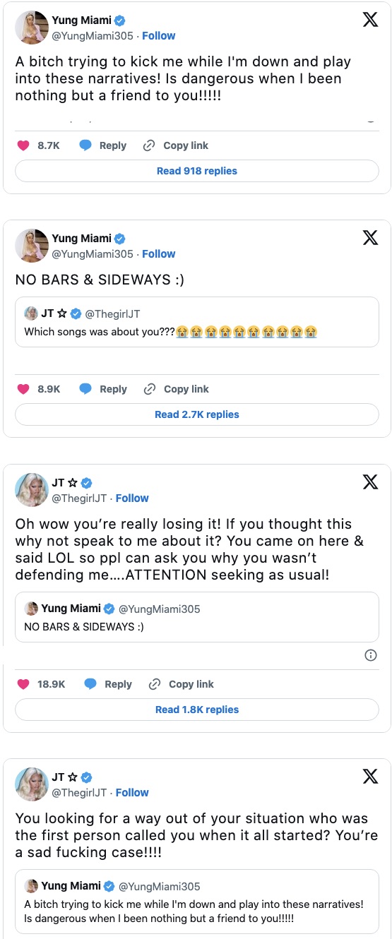 For months, there have been murmurs that members JT and Yung Miami were at odds – with eagle-eyed fans noting that the group traveled separately, rolled with seemingly opposing companions, and appeared distant.
