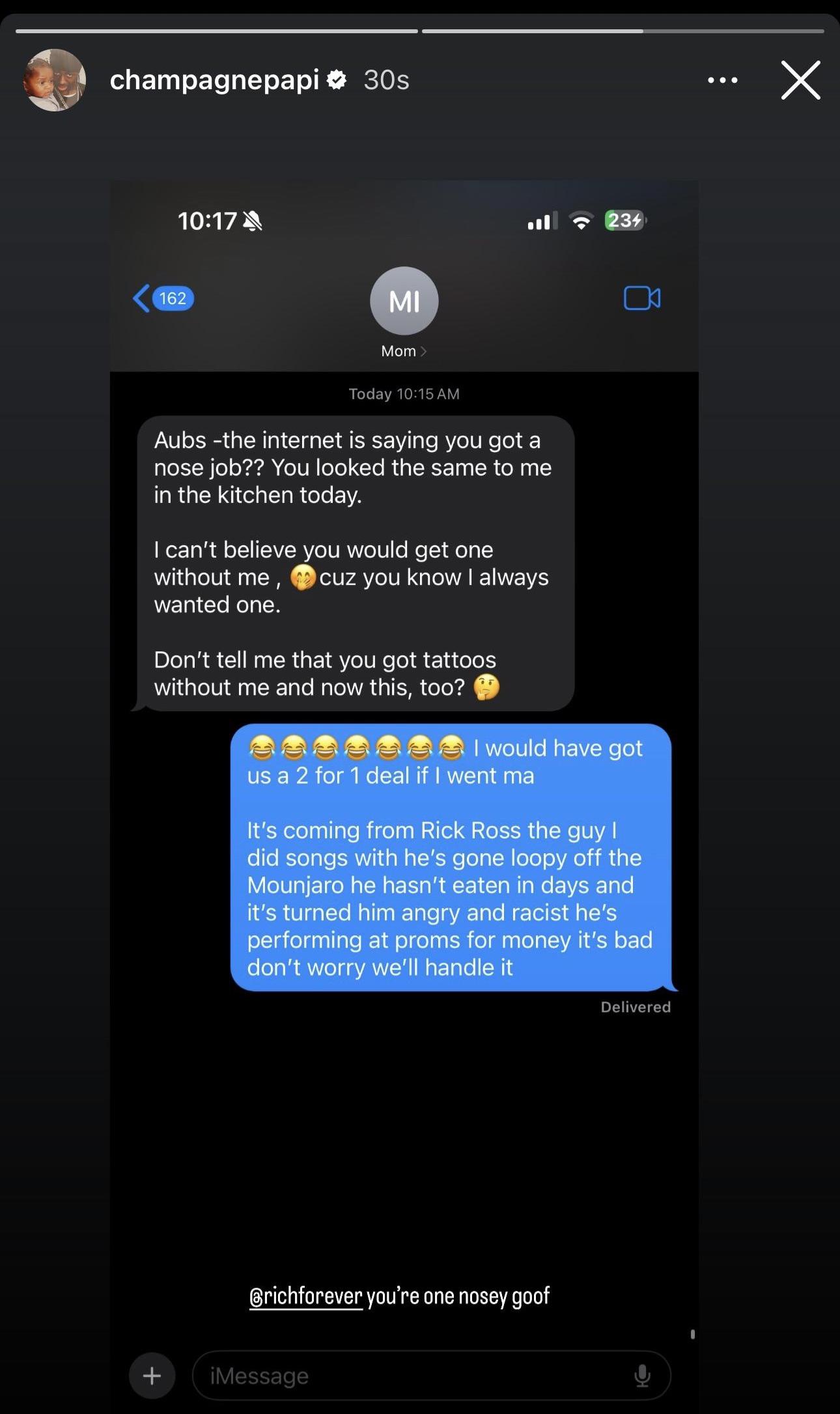 Taking to Instagram Stories, the chart-topper shared an apparent exchange with his Mother.
