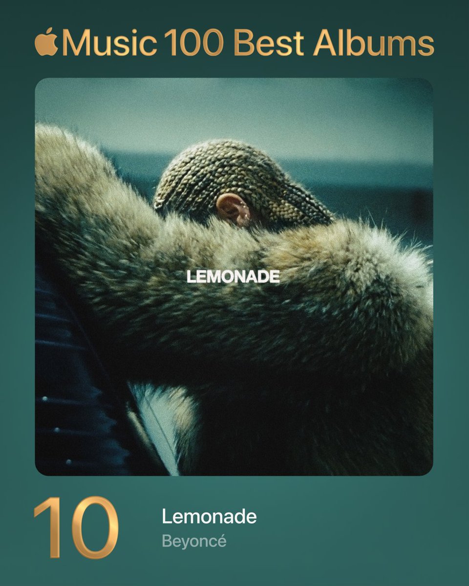 On the Apple Music tally, 2016’s ‘Lemonade’ – home to ‘Formation’ and ‘Daddy Lessons’ – places at #10.