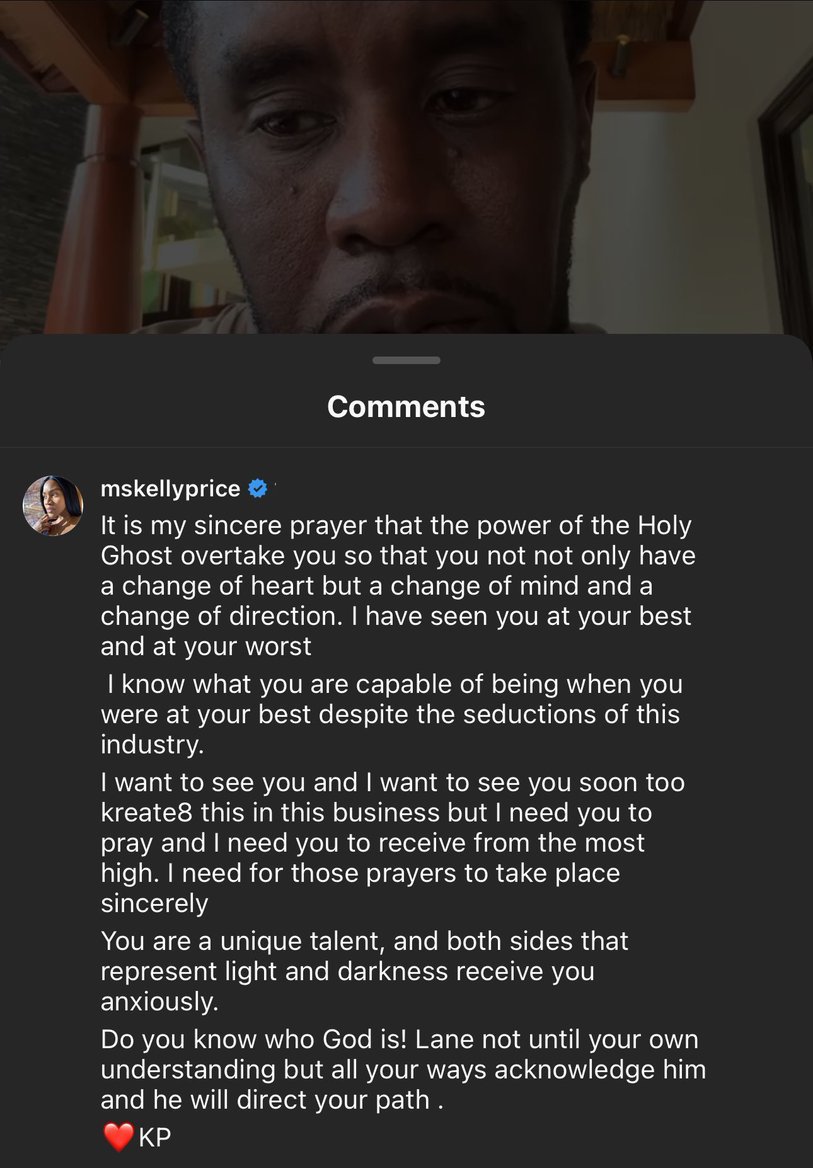 Leaving a lengthy comment under the post, Price – who worked with Diddy on Notorious B.I.G.’s 1997 hit ‘Mo Money, Mo Problems’ – anchored her response in the need for “prayer.”
