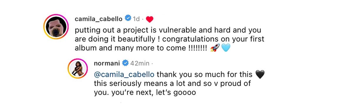 Celebrating her ex-bandmate’s release, Cabello commented on her Instagram: